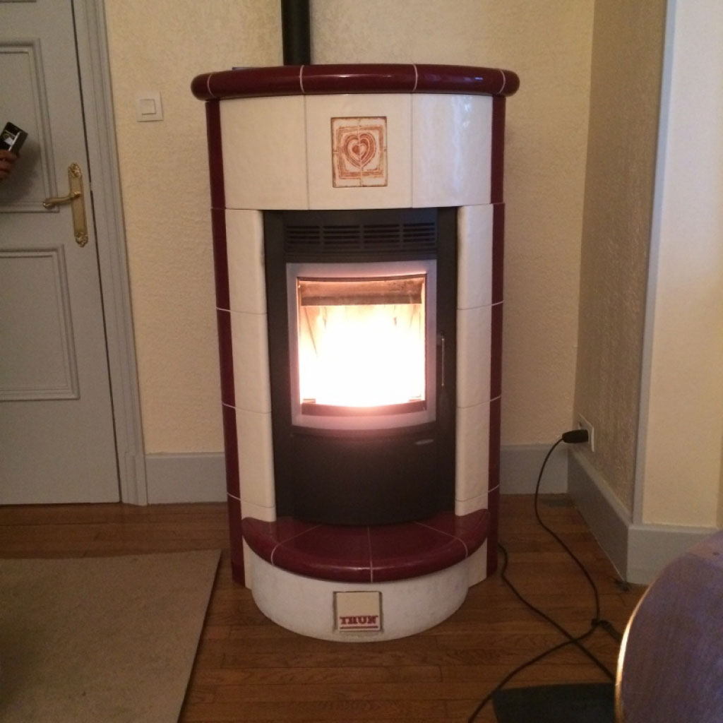 installation Poêle à granulés de bois en faience (pellets) chauffagiste qualibois RGE