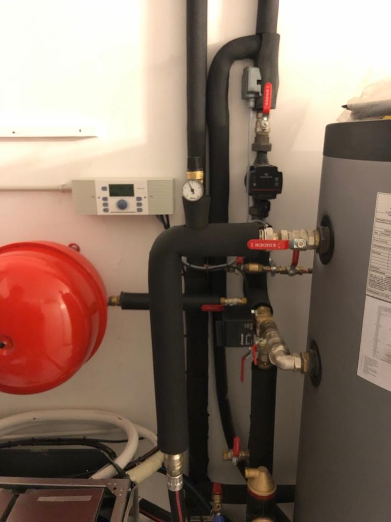 Sur ancienne installation de pompe à chaleur fonctionnant sur un capteur de sol extérieur et un plancher chauffant intérieur, tous deux au gaz frigorigène R22, nous avons installé une pompe à chaleur AIR/EAU pour le chauffage de la villa en réutilisant l'ancien plancher chauffant gaz.