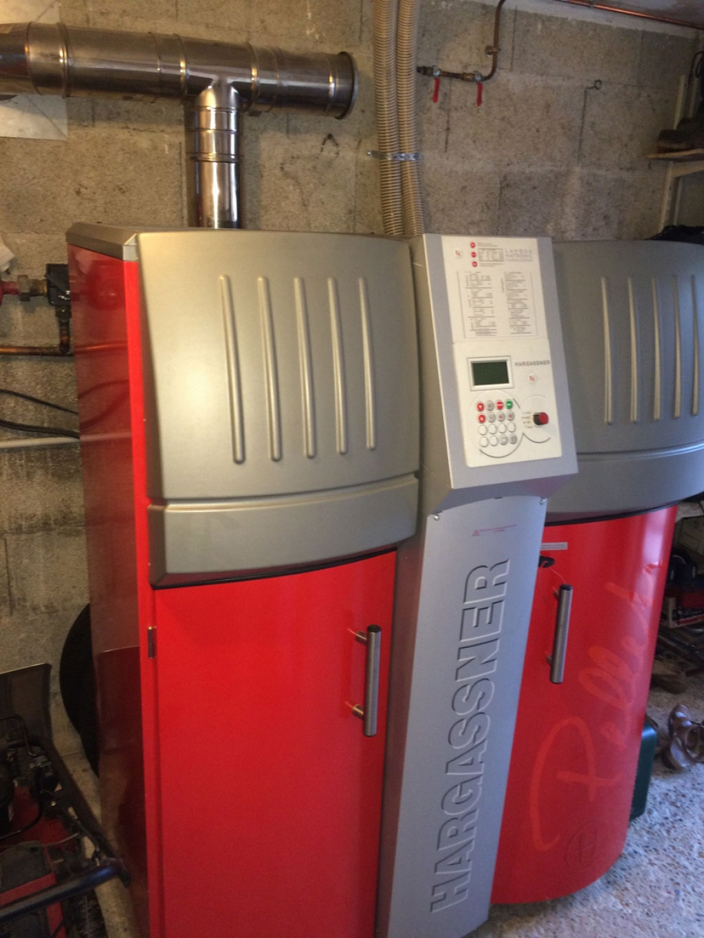 Chaudière Hargassner Granulés bois (pellets)installée en même temps qu'un ensemble de radiateurs.
