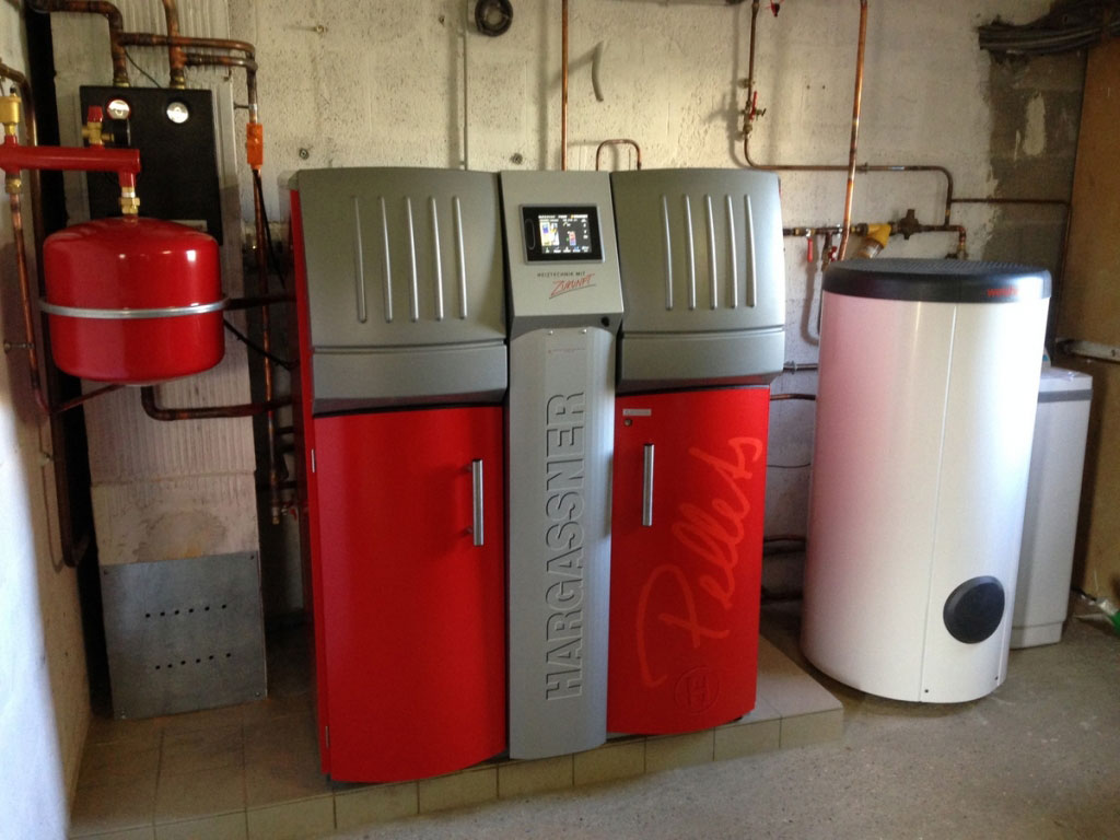 Installation d'une chaudière à Granulés Hargassner à Chassieu - 69 Rhône pour le chauffage d'un plancher chauffant et de radiateurs à l'étage.