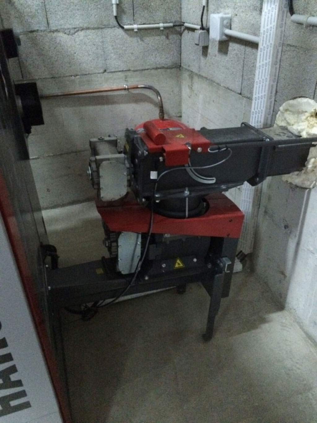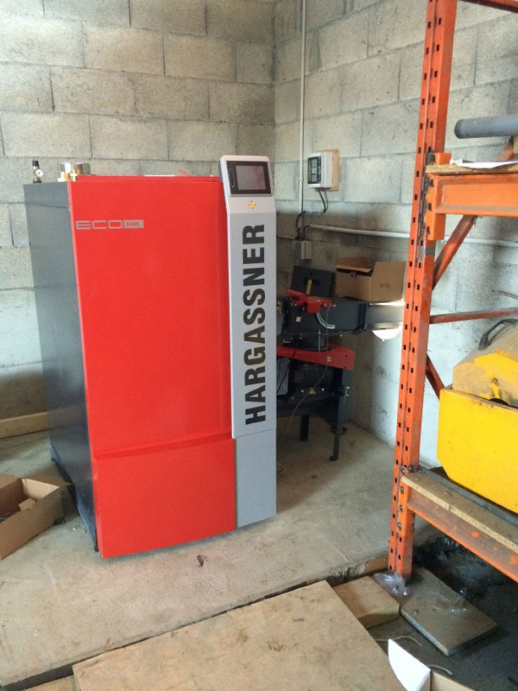 La chaudière bois déchiqueté Hargassner d'une puissance de 50 Kw à Communay 69 Rhône assure le chauffage d'un dépôt de 2000 M3 par l'intermédiaire d'aérothermes et le chauffage d'une villa de 150 M2 avec un plancher chauffant. La chaudière assure aussi la production d'eau chaude sanitaire.