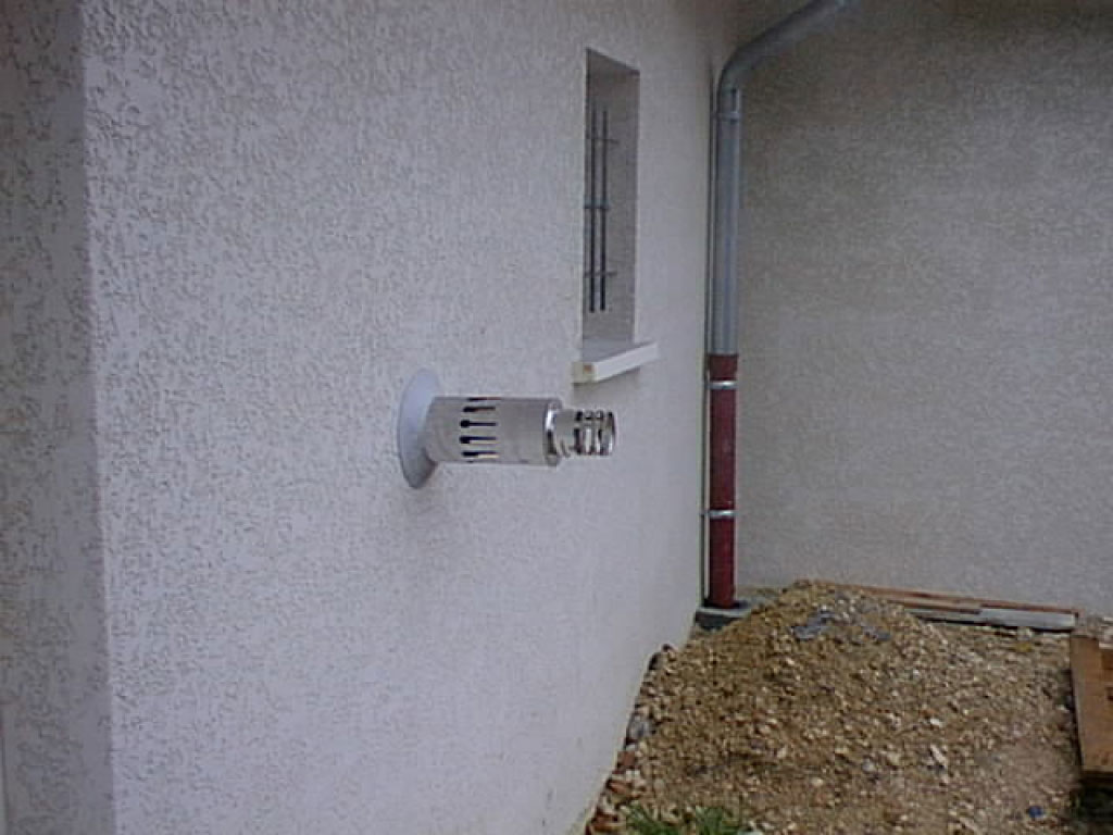 Chaudière fioul De Dietrich ne nécessitant pas de conduit de cheminée vertical, l'évacuation des gaz brûlés se fait par une ventouse en façade. La chaudière assure le chauffage de la villa par l'intermédiaire de radiateurs et l'eau chaude sanitaire.