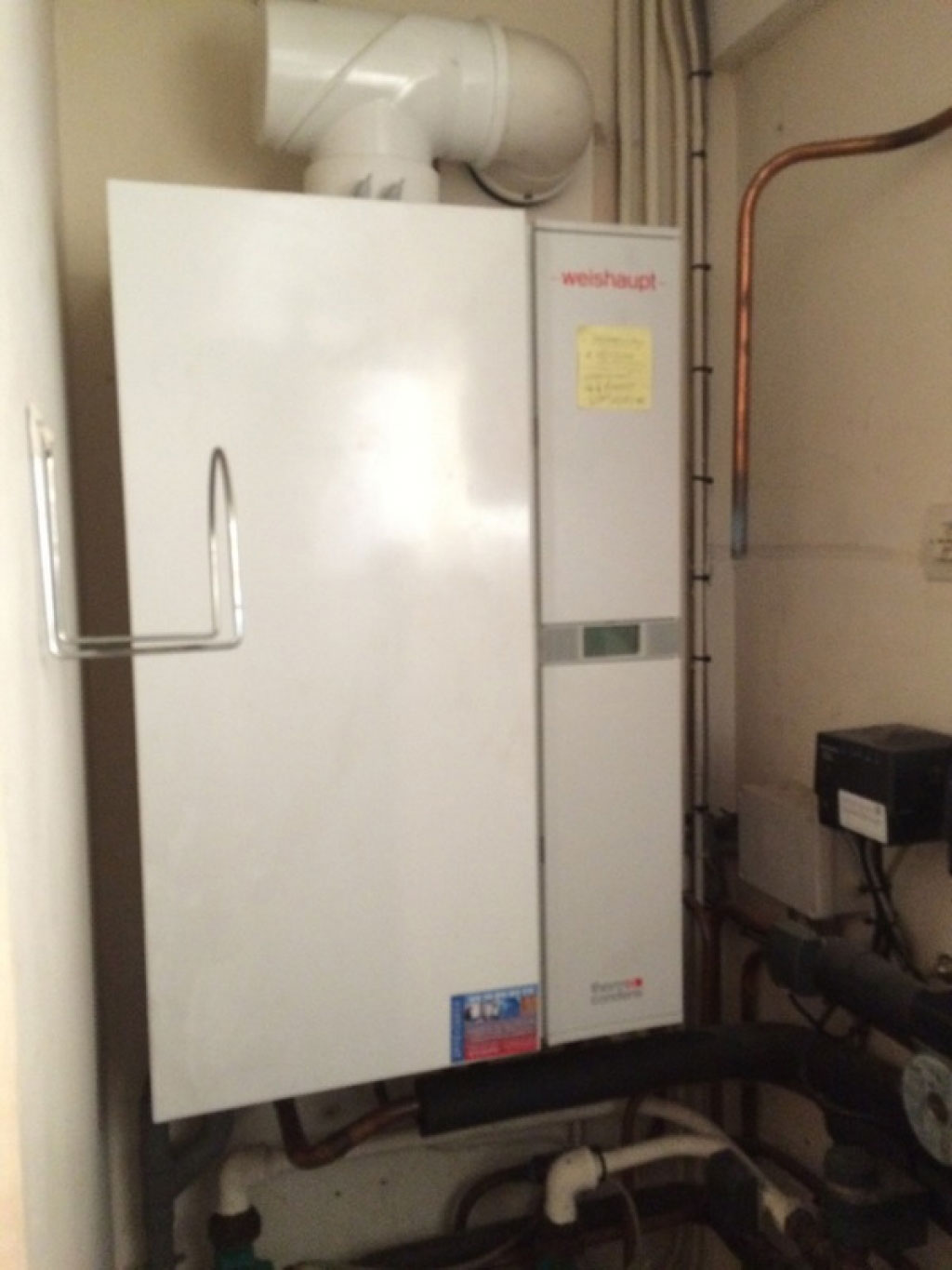 Système solaire combiné installé à Jons 69 Rhone. Le champ de 6 capteurs solaires est raccordé sur un ballon de stockage multifonctions de 1500 litres. Les capteurs assurent environ 30 % du chauffage de la villa, la production d'eau chaude sanitaire et le chauffage de la piscine en été. L'appoint est géré par une chaudière à condensation WEISHAUPT. La distribution de chaleur se fait par un plancher chauffant divisé en deux zônes, une zône nuit, une zône jour.