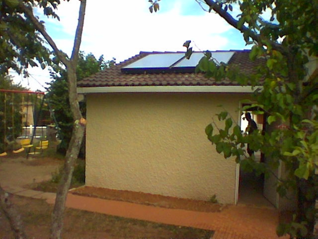 Installation d'un chauffe eau solaire individuel pour la production d'eau chaude de la villa pour une famille de 4 personnes. Deux capteurs solaires et un stockage de 300 litres.