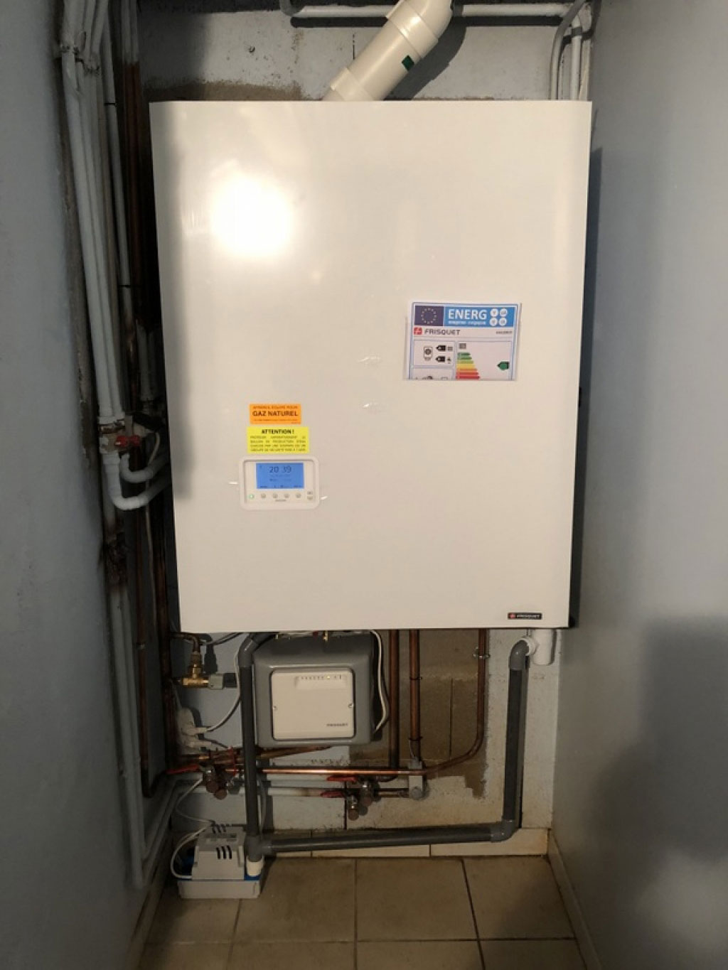 Installation chaudiere gaz condensation FRISQUET sur un plancher chauffant