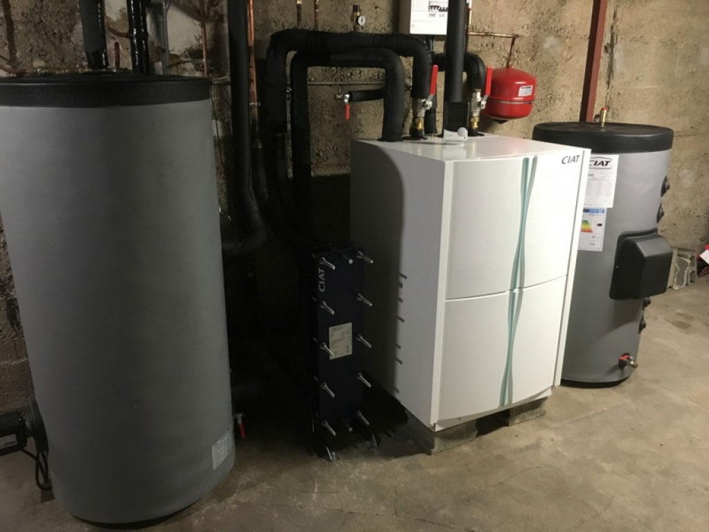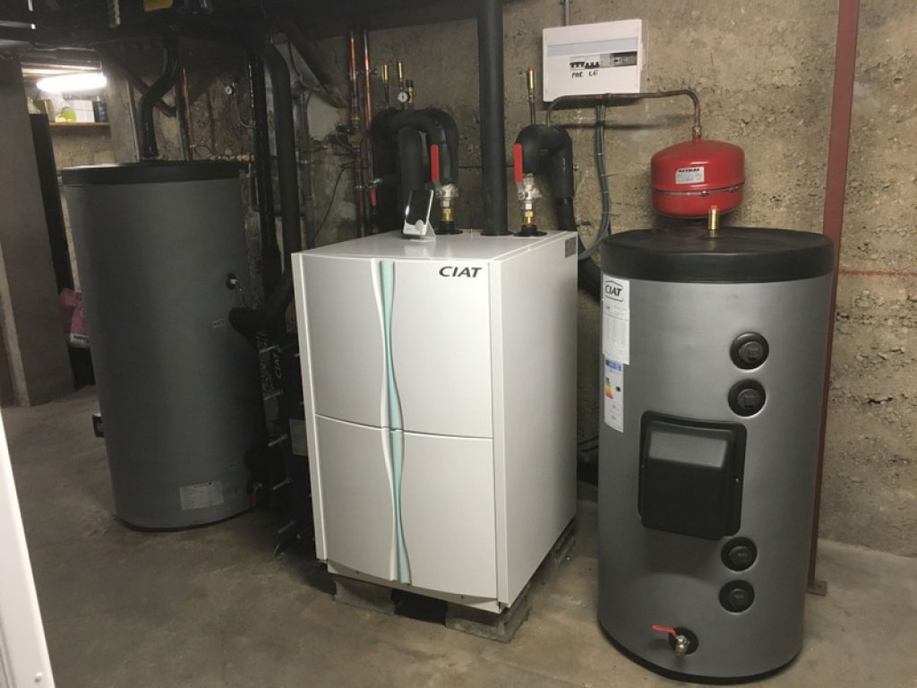 Installation d'une pompe à chaleur eau eau CIAT en remplacement d'une ancienne pompe à chaleur CIAT pour le chauffage d'une villa équipée d'un circuit radiateurs.