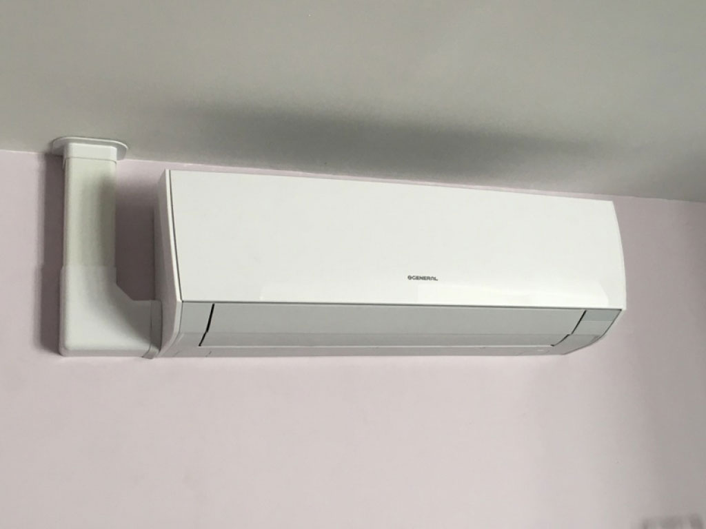 Installation d'une climatisation réversible dans un ensemble de bureaux, le quadri-split installé permet le chauffage et le rafraichissement des bureaux avec des unités murales