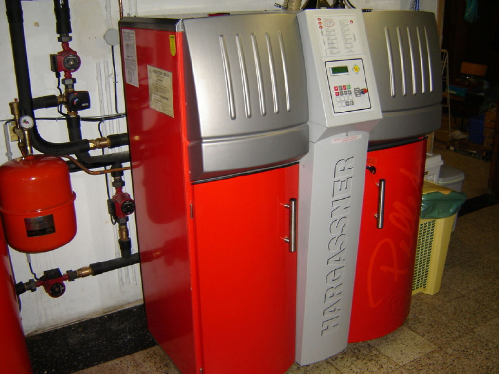 Installation d'une chaudière Hargassner pour, le chauffage, la production d'eau chaude et d'un silo de stockage des granulés.