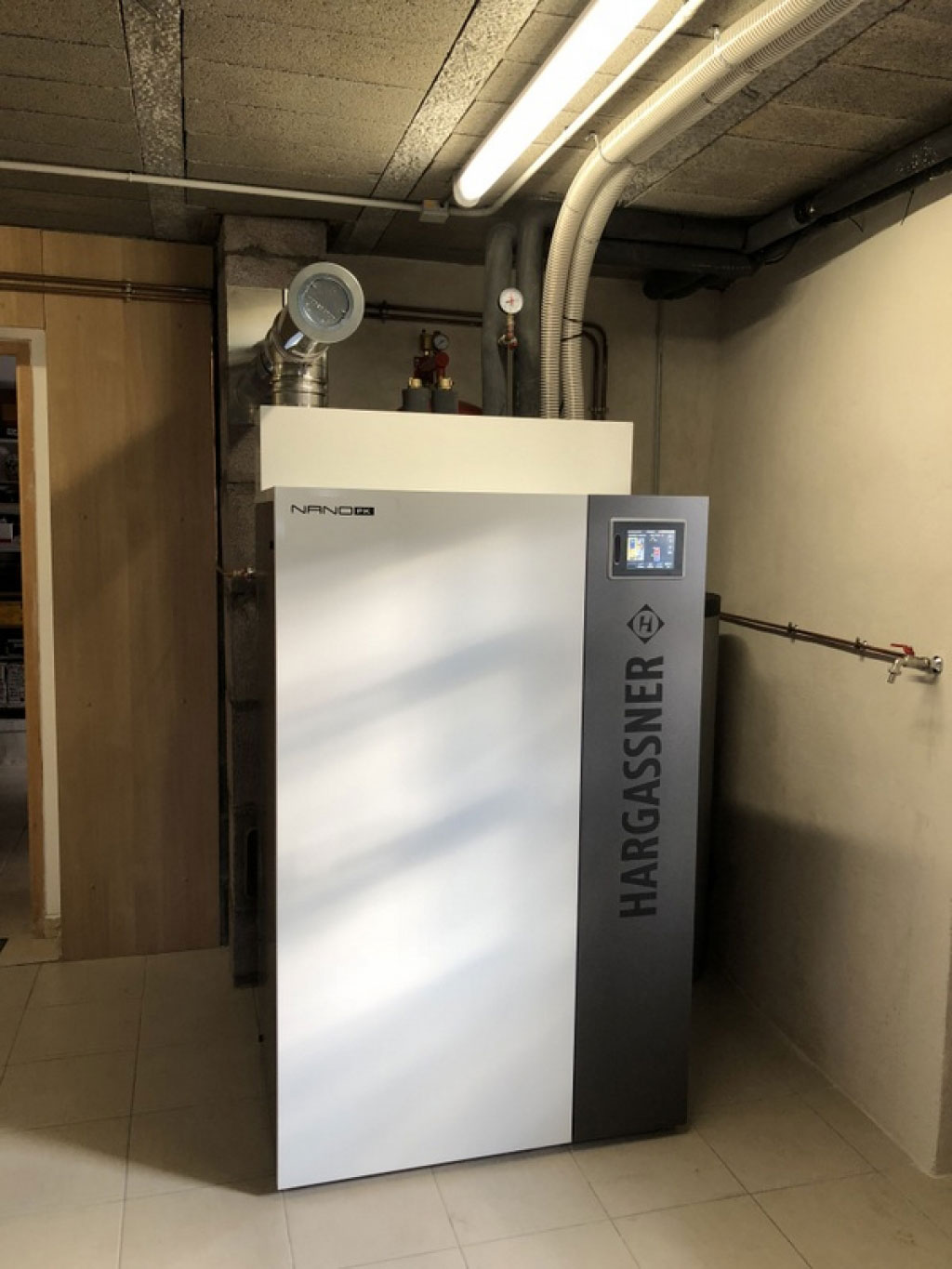 Chaudière Hargassner pour, le chauffage, la production d'eau chaude sanitaire. (ballon de 200 litres) Installation en remplacement d'une pompe à chaleur.
