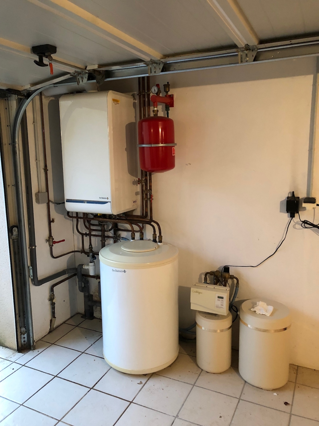 La chaudière DE DIETRICH assure le chauffage du plancher chauffant, du circuit radiateurs et la production d'eau chaude sanitaire.
