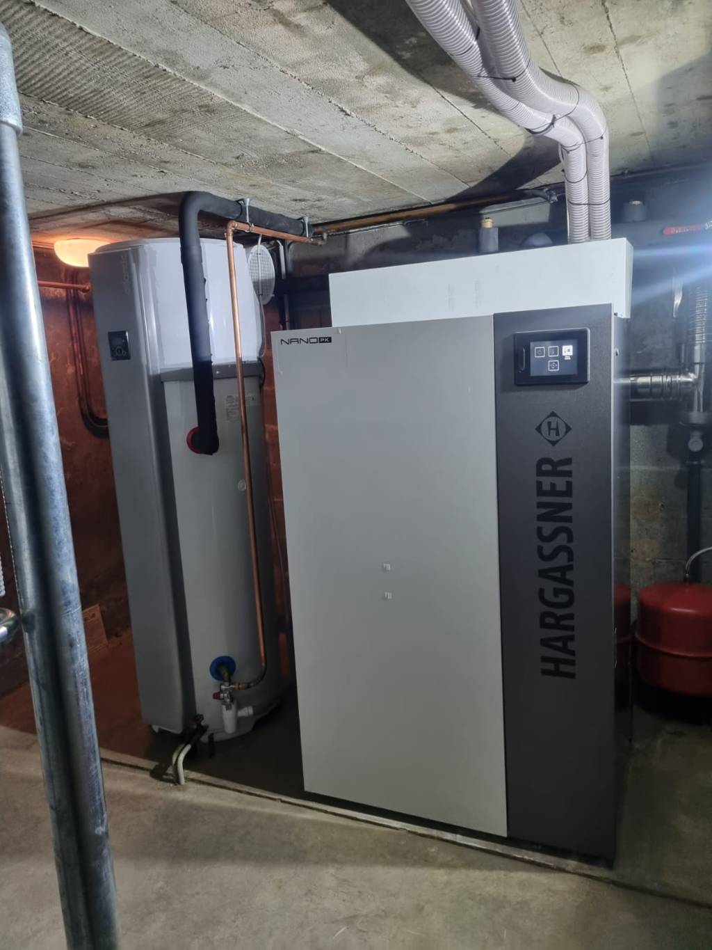Dans l'Ain (01) sur la commune de Saint-Maurice-de-Beynost, remplacement d'une chaudière fioul par une chaudière à granulés bois (pellets), de marque HARGASSNER.