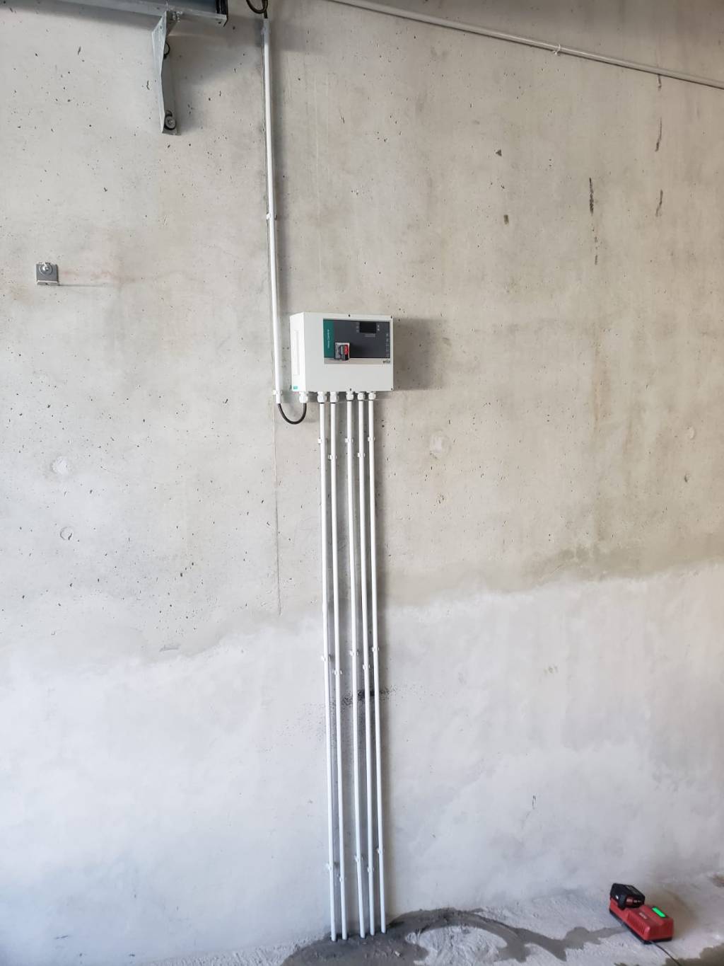 Ces deux pompes permettent de rejeter l'eau pluviale car le fil de l'eau des égouts de rejet sont plus haut, un programmateur Wilo permet le pilotage des deux pompes ainsi qu'un relais alarme sonore en cas de défaillance.