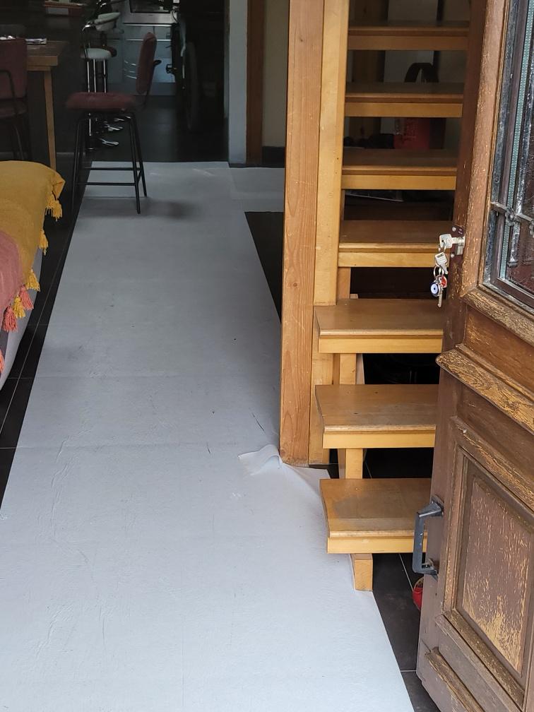 Comme pour toute nos interventions nous prenons soins de l'habitat de nos clients, ici par exemple en protégeant le sol lors de l'évacuation de la chaudière.