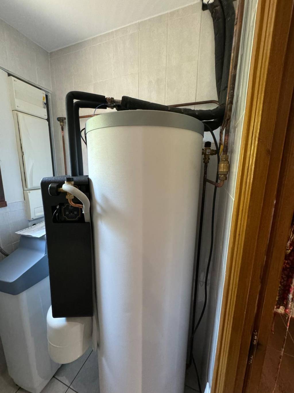 Montage d'un ballon solaire thermique pour une production d'eau chaude avec une résistance intégrée et une station solaire.