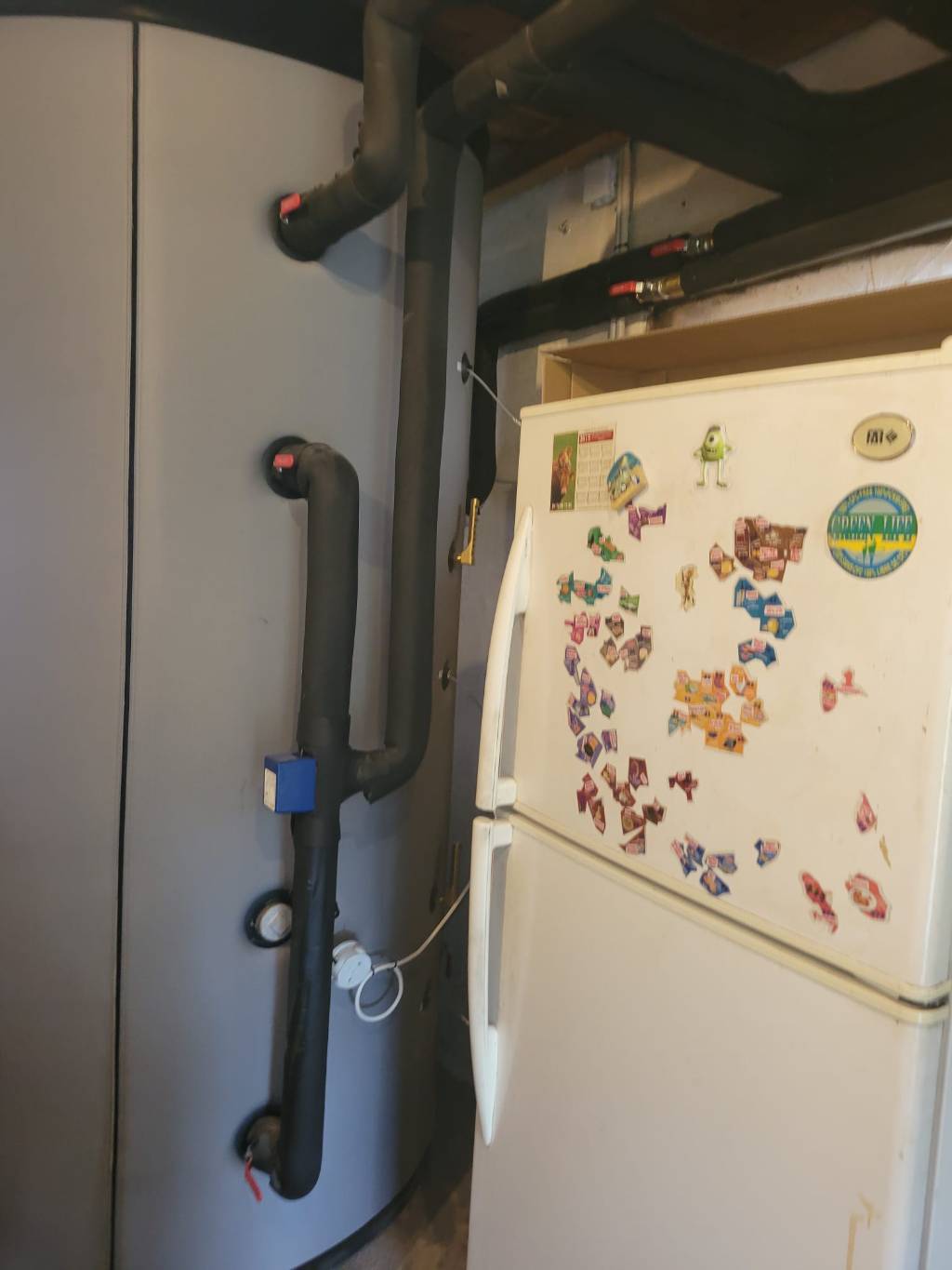Montage d'une chaudière bois bûches HARGASSNER de type Néo HV 20 de 24 kw avec un ballon tampon de 2000 litres ainsi que le branchement hydraulique sur le ballon tampon d'une pompe à chaleur existante Daikin haute température en relève de la chaudière bois bûches avec un pilotage automatique.